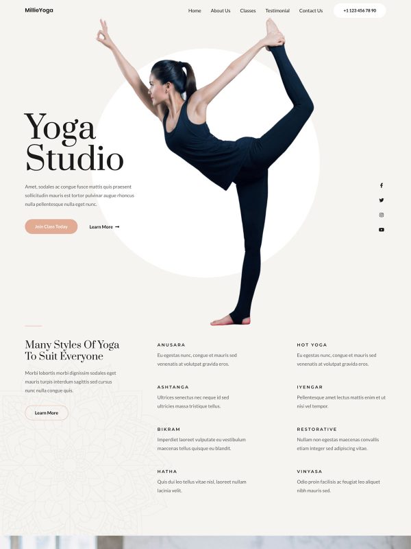 The photography and graphics are perhaps more important than the copy because they convey outcomes. A yoga studio is not selling the floors and walls, it is selling health. A construction company is not selling framing or windows, it is selling a happy home.